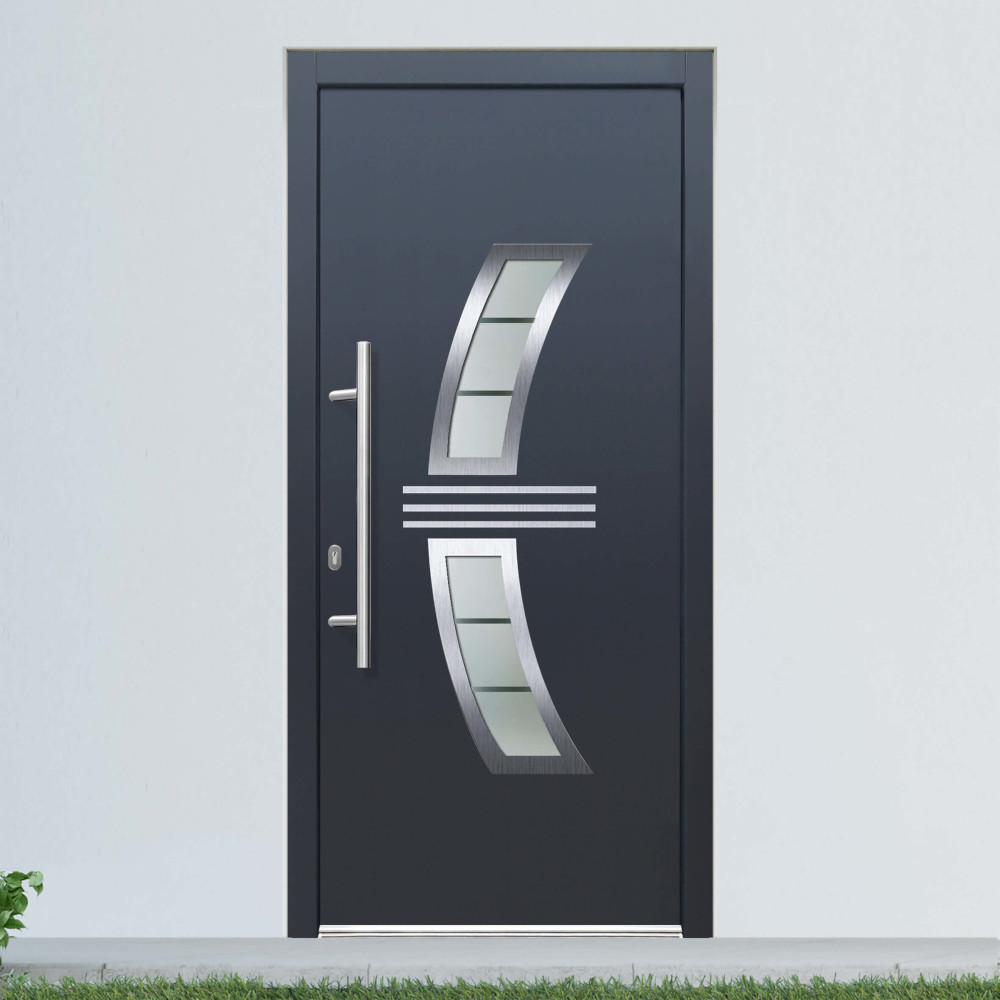 This door is truly one-of-a-kind! "Unique and unusual" is perhaps the best way to describe the Cairns back door with its two curved glass elements with glazing bars and its three horizontal stripes. The design looks very modern – futuristic, even – without appearing overblown. The door's combination of materials is just as modern, too. Indeed, the Cairns model consists of a uPVC panel covered in aluminium outer cladding. This gives you the perfect blend of excellent thermal insulation and robustness against external influences.