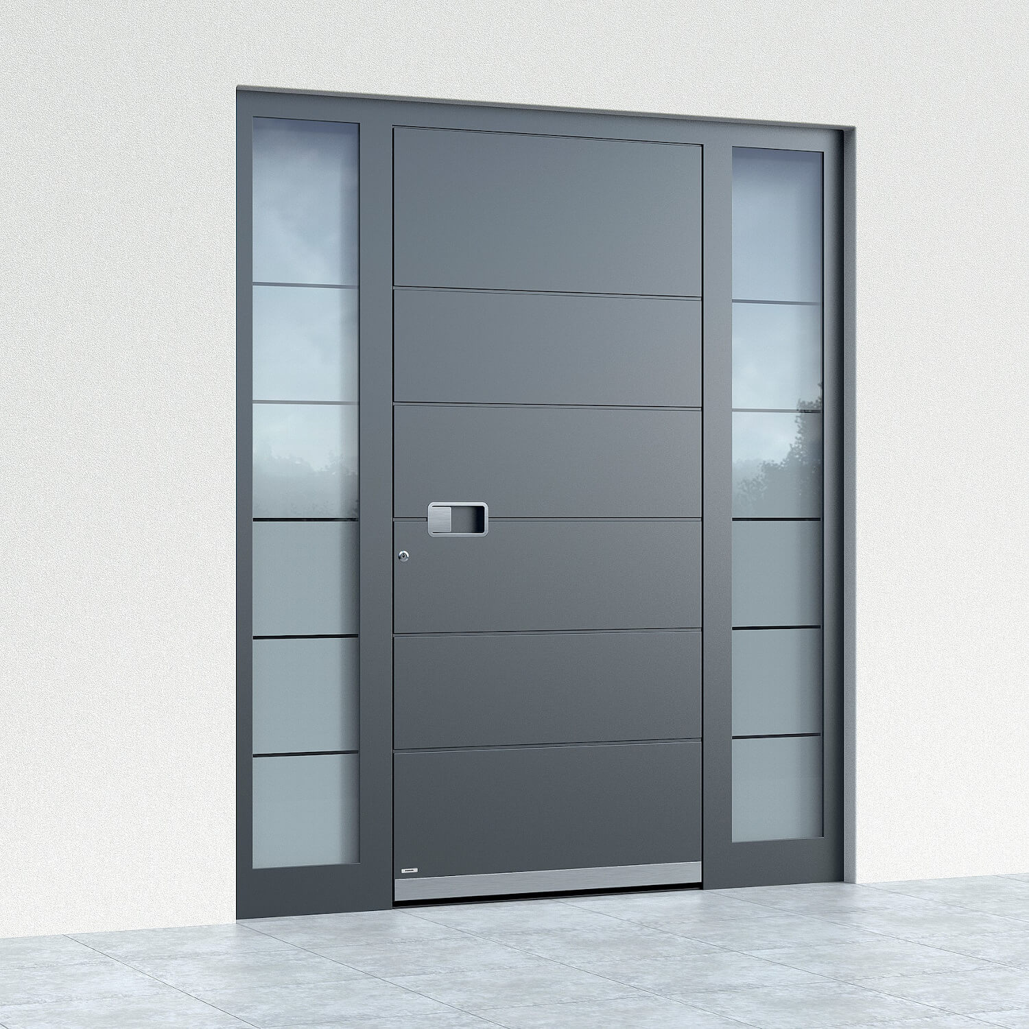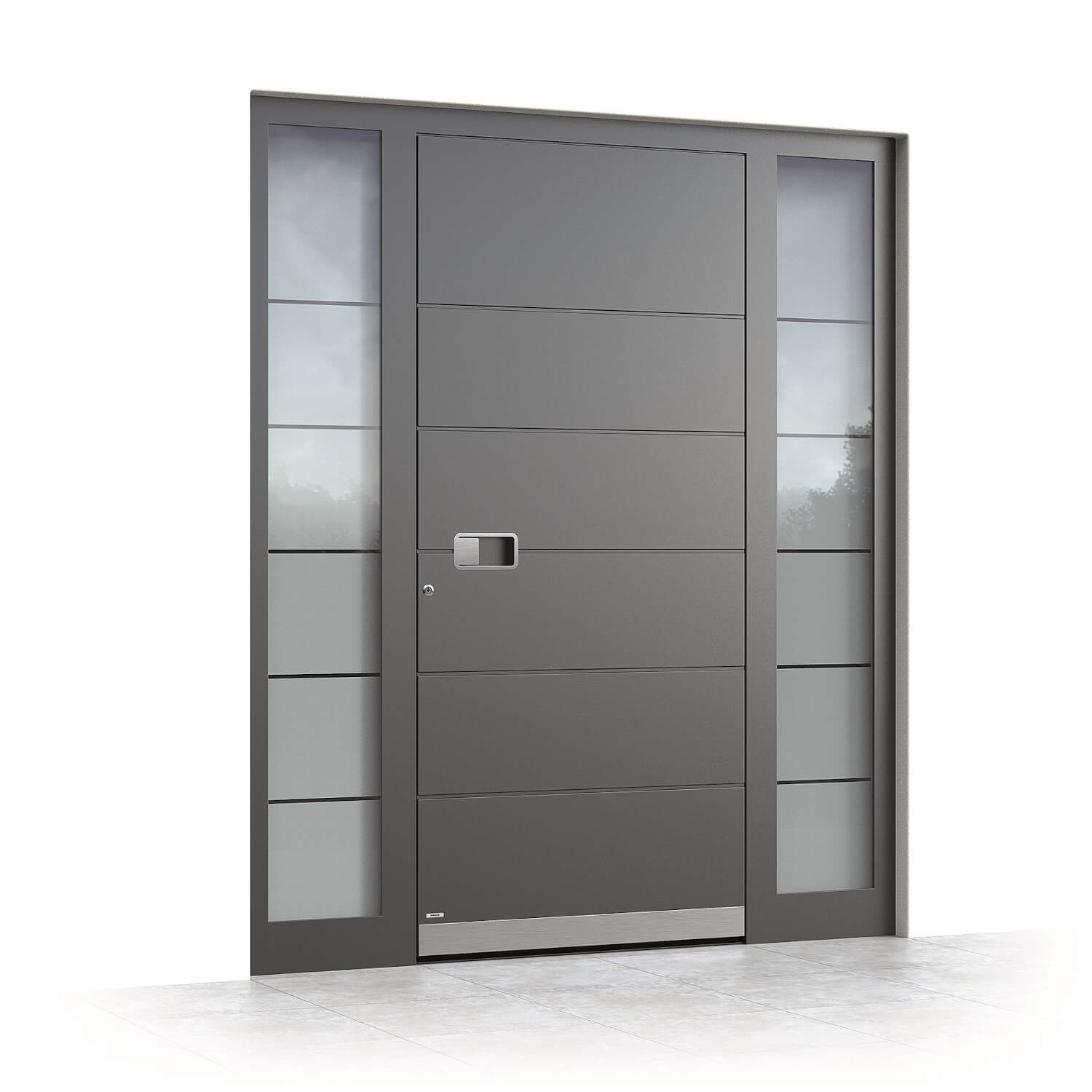 As specialists in aluminium front doors, we have the expertise required to offer a large selection of high-quality front doors: The Lisbon model front door stands out thanks to its excellent design and top-quality technology. You can also fully customise the Lisbon front door to suit your tastes. The modern manufacturing processes used to create our weather-resistant, scratch- and impact-proof aluminium doors result in the very best solutions when it comes to thermal insulation and break-in protection. Indeed, in addition to saving energy, front doors should also ensure the safety of the people who live behind them.