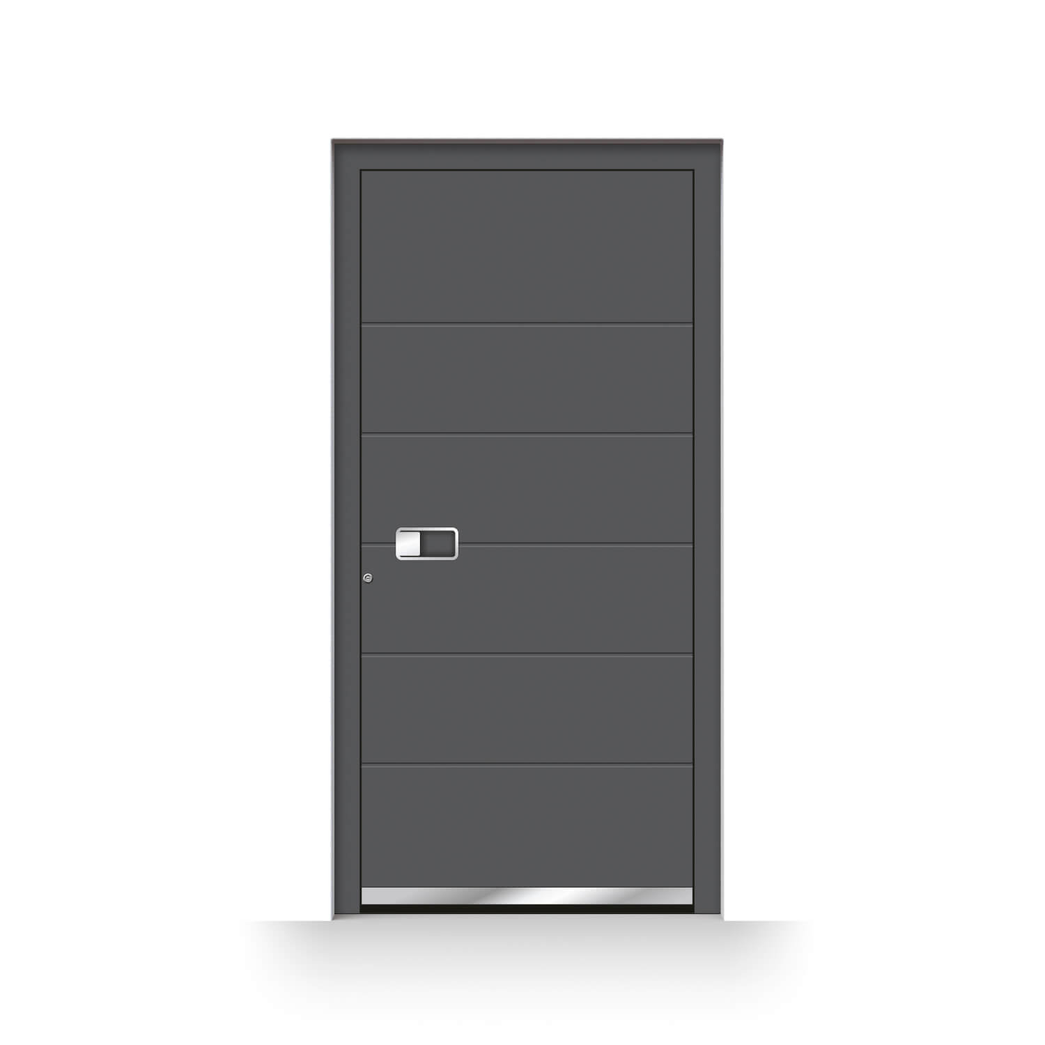 The Lisbon model focuses on restrained design with subtle relief stripes that stand out or fade into the background depending on the colour you choose. One really special feature is the elegant recessed handle that is comfortable to use and underscores the clean aesthetics of the Lisbon front door.