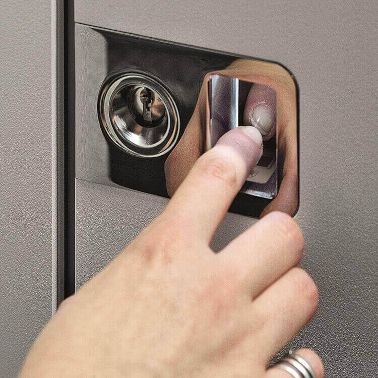 With the fingerprint scanner security feature, no key is required and only people who have a fingerprint stored in the system or who know the code are granted access. With the integrated daytime latch, you can also set the door to "open access" with just one movement. This means the door can be easily used without a key or code.