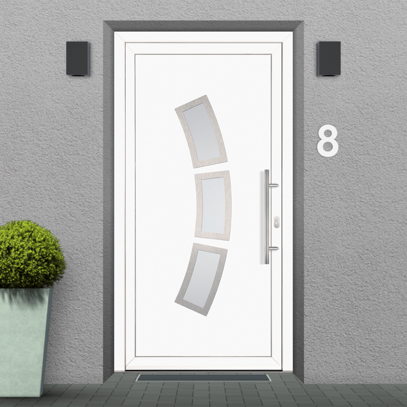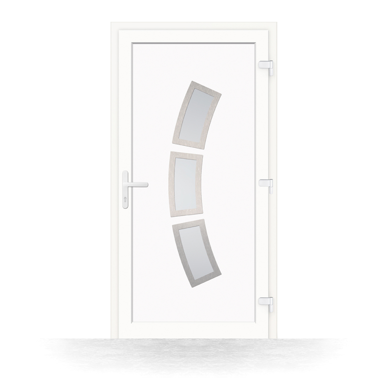 The uPVC front door model Hamilton in a modern design & 3 curved glass sections is available in many colours.