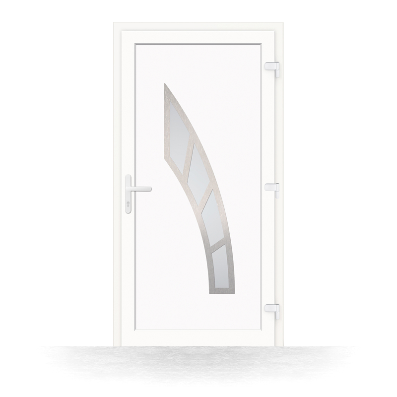 The plastic front door model Memphis has 4 curved glass sections and is available in many different colours.