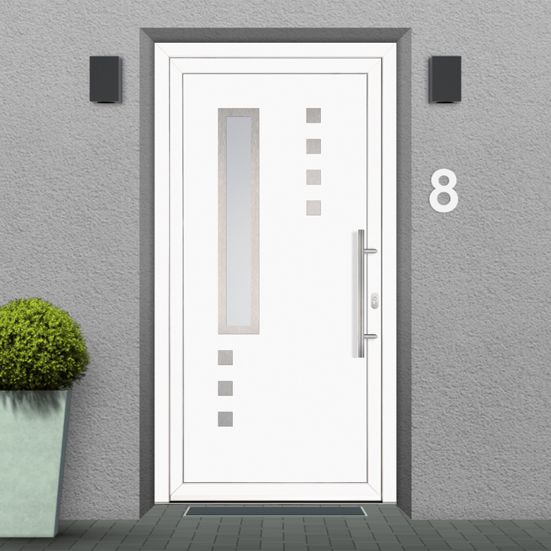 It has to be able to withstand a lot, it should be safe and expectations are also high when it comes to appearance: front doors have a lot to offer. The Raleigh uPVC door model is recommended with its high-quality and elegant design: a classy framed glass insert with three small square plates on the top and three on the side creates an elegant but not too austere effect. It is easy to care for and can be equipped with a wide range of extras. For example, with special fittings and locking systems - these accessories keep potential burglars away.