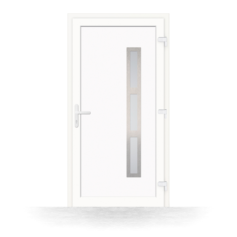 The uPVC front door in the San Antonio model has 3 glass sections and thus a high light penetration. It is available in many colour variants.