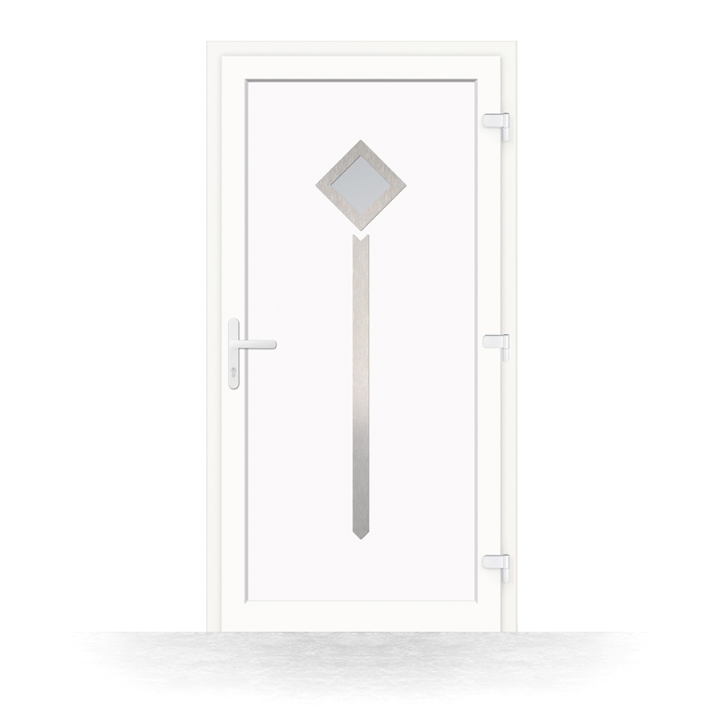 The uPVC front door model Seattle has a modern design with a diamond-shaped glass cut-out and is available in many different colours.