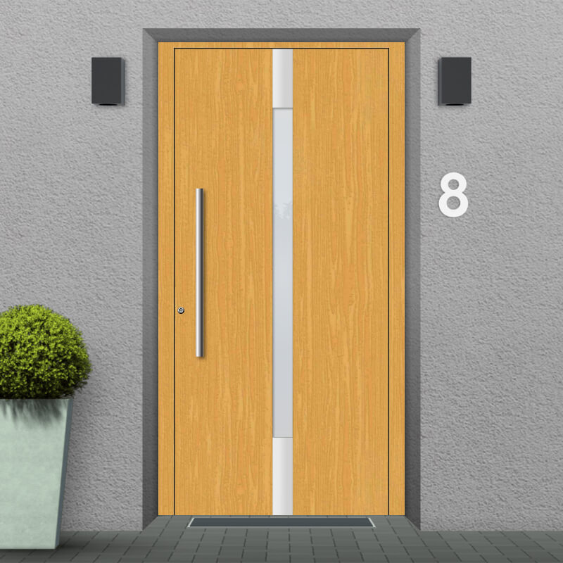 Front doors made of wood offer a number of advantages compared to other materials. On the one hand, they are eco-friendly, since wood is a renewable raw material, and on the other hand, they convey a high-quality, unique ambience. Real wood such as spruce, oak or larch in particular gives your front door a natural appearance.