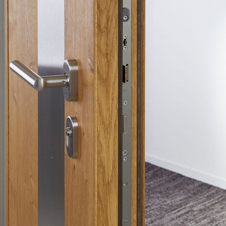 The Baltimore front door is made from high-quality real wood, giving it an exclusive look and optimal properties in terms of thermal insulation, break-in protection and soundproofing. There are three different types of wood to choose from, each with its own advantages. Oak is a first-class furniture wood with high stability, clear grain and long durability. Larch, on the other hand, is a bit softer and has a high-contrast structure. Spruce wood has a very finely striped grain and a structured surface. However, all three variants have one major advantage: They are ecologically safe and convey a unique ambience. You can also choose between different colours in the windows24.com configuration tool.