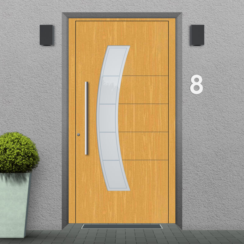 The front door is made of high-quality A-grade wood, but you can also order your desired model made of robust aluminium.