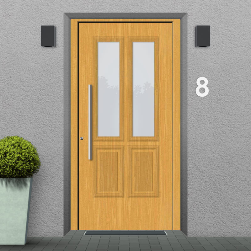 The wooden door can be further personalised with a skylight, side panels or various RAL structures and colours. Of course, you can also use the configurator to determine the dimensions you want for your door and then have it made to order to fit your home.