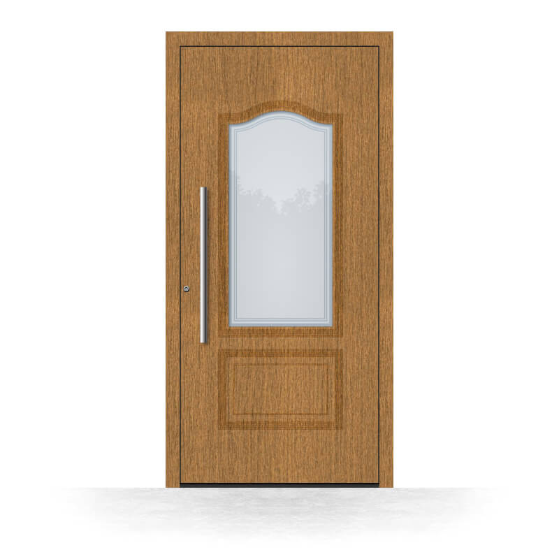 At the bottom of the door there is a coffered relief panel which defines the urban style of a noble city villa, providing a further visual highlight. The material works particularly well in this combination. This model is also available in uPVC or stainless steel, choose your material in just a couple of clicks using the configuration tool.