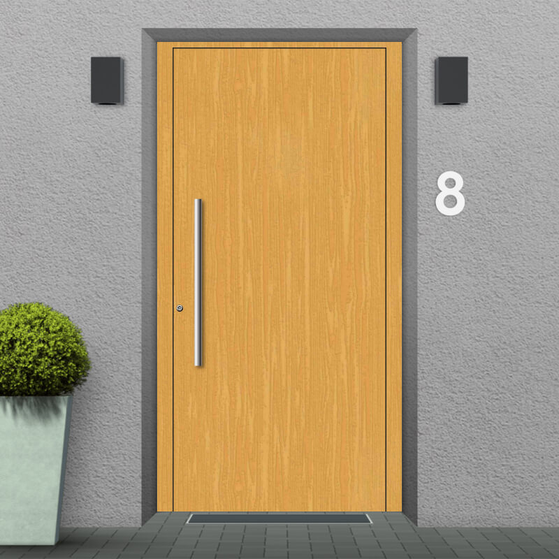 Our Houston model wooden front doors stand out thanks to their simple look that is nevertheless functional and inviting. These front doors look great without any frills at all and fulfil all the fundamental tasks a door needs to perform: Withstanding weathering, providing energy-efficient thermal insulation and keeping unwanted visitors securely at bay. The Houston model front door's stable construction fulfils all of these functions and impresses with its understated appearance.