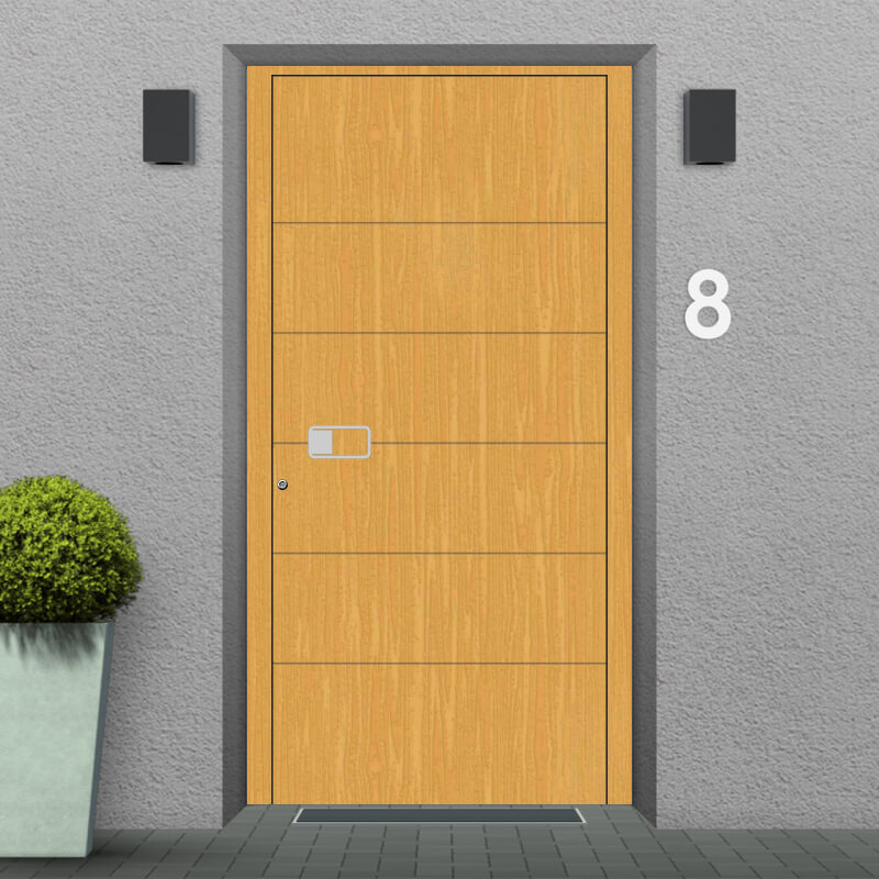 A door made of a material that has been tried and tested over the centuries, combined with the latest technology and elegant craftsmanship: Our Southampton model front door catches the eye straight away with its simple yet high-quality design that comes fitted with a recessed handle as standard. Wooden front doors also exude a certain flair that is well known for its naturalness and warmth. At once traditional and cutting-edge, this door model lets you bring a slice of nature into your living space while enjoying the perfect combination of exquisite design, security and energy efficiency.