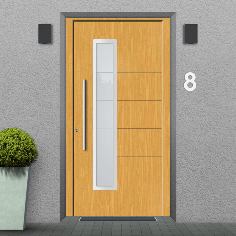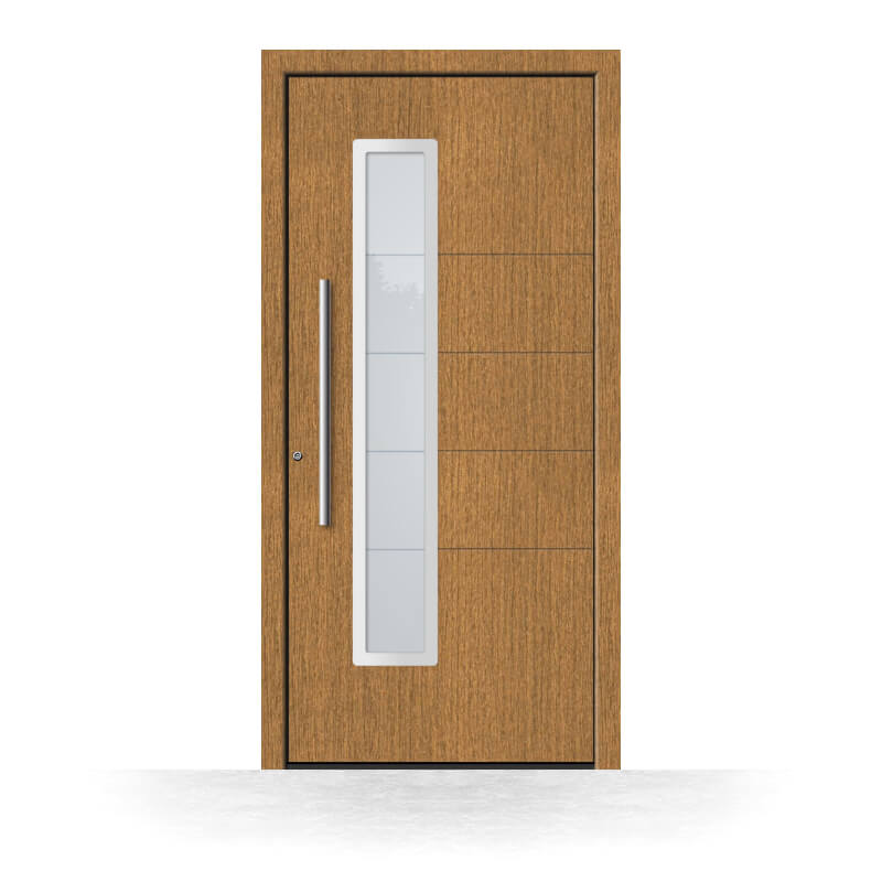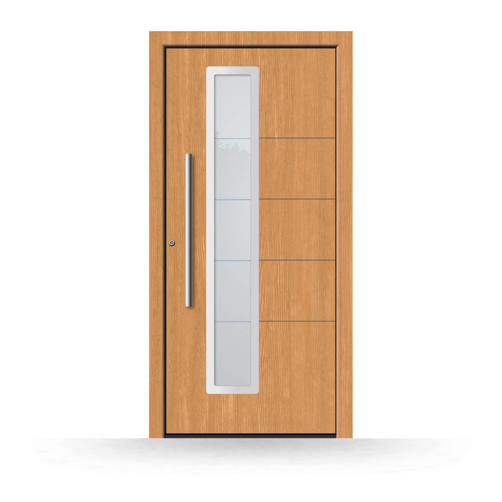 Depending on your requirements, you have the option of ordering the Washington front door in different colours, wood types, or even other materials such as aluminium. This allows you to adapt the door perfectly to fit in with the front of your house, which creates a harmonious entrance area for your home.
