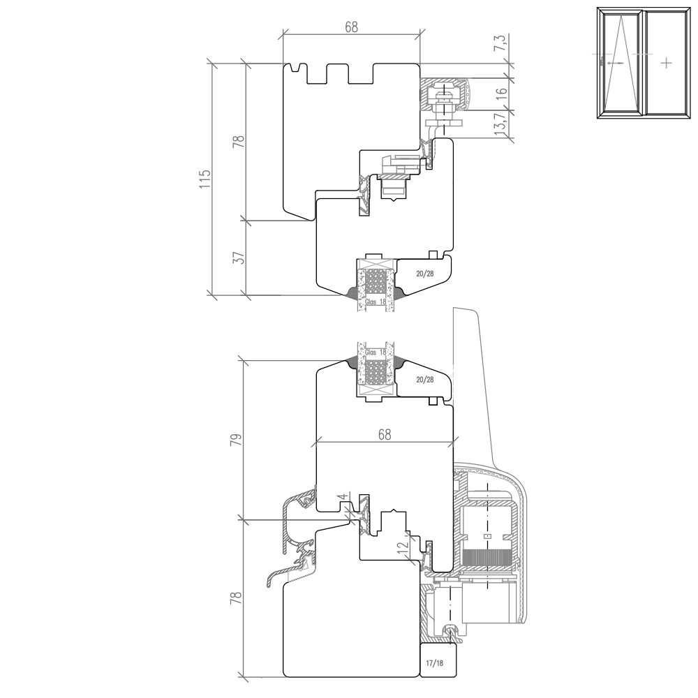 Detail drawings parallel slide & tilt doors Classic IV 68 and IV 78