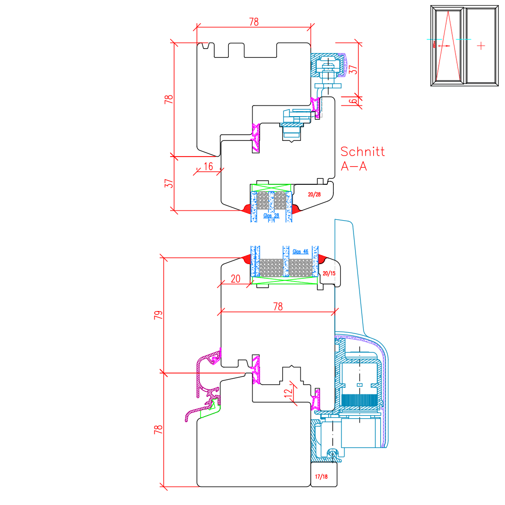 Please note that these are standard drawings. If you would like to know exactly which profiles and components are installed prior to ordering, please contact our customer service at +49 711 860 601 60 or by email info@noSpamwindows24.com. Our experts would be happy to assist you with configuration and answer any questions regarding our products.